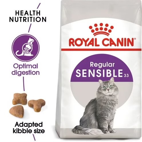 غذای خشک گربه رویال کنین مدل Sensible بسیار خوش طعم است و شامل سه شکل مختلف کیبل و طعم دهنده هایی است که با دقت انتخاب شده اند تا مصرف غذا را تحریک کرده و هضم راحت تر را فراهم کنند.